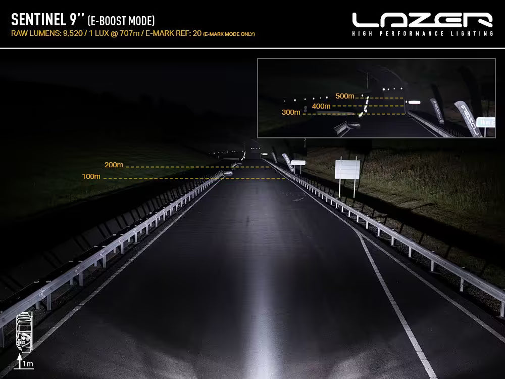 Reflektor dalekosiężny LAZER SENTINEL 9" to profesjonalny system oświetleniowy dedykowany dla pojazdów użytkowych, ciężarówek i maszyn budowlanych. Wyposażony w 20 diod LED wysokiej mocy, lampa emituje imponujące 9520 lumenów i gwarantuje zasięg oświetlenia do 1414 metrów. Dzięki dużej średnicy obudowy (225mm) oraz 52-stopniowemu kątowi rozpadu światła, reflektor zapewnia szerokie i równomierne oświetlenie terenu. Temperatura barwowa 5000K umożliwia naturalnie ostry obraz podczas jazdy zarówno w dzień, jak i w nocy, zmniejszając zmęczenie oczu kierowcy. Profesjonalna aluminiowa konstrukcja z heksagonalnym wzorem gwarantuje trwałość w najtrudniejszych warunkach eksploatacji.