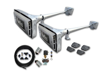Zestaw sygnałów pneumatycznych HADLEY 2x74 cm – prostokątne, chromowane, z elektrozaworem 24V | Styl, siła i bezpieczeństwo na drodze