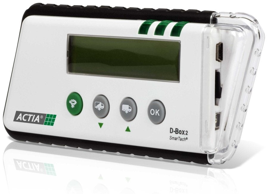 D-BOX2 to kompaktowe i przy tym wielofunkcyjne urządzenie do odczytu tachografów cyfrowych z wyświetlaczem LCD. Wyposażony jest w zintegrowany czytnik kart kierowców, który pobiera dane natychmiast po włożeniu karty kierowcy, a następnie zapisuje plik na wymiennej karcie microSD o pojemności 4GB. Zasilany jest baterią CR123. Nowa wersja czytnika ACTIA D-BOX 2 uzyskała aktualizację, która wprowadza funkcję sczytywania danych z inteligentnych tachografów najnowszej generacji! Funkcje oraz cechy czytnika w pigułce: • Zintegrowany czytnik do odczytu kart kierowców • Współpraca ze wszystkimi homologowanymi tachografami cyfrowymi (niezbędna jest karta przedsiębiorstwa) • 3 możliwości pobrania danych: pełny zakres informacji z tachografu; od momentu ostatniego pobrania; z określonego okresu czasowego • Możliwość pobrania dodatkowych danych, jak np. prędkości • Wiele formatów zapisu plików do wyboru (.esm, .ddd, .v1b-c1b, .tgd) • Karta micro SD o pojemności 4GB pozwalająca na około 350 pobrań z tachografów przed zrzuceniem danych na komputer • Adapter do karty micro SD w zestawie • Łatwa obsługa za pomocą 4 gumowych przycisków • Wytrzymała i lekka obudowa z plastiku • Czytelny wyświetlacz • Język polski komunikatów (plus 25 innych języków do wyboru) • 3 informacyjne diody LED • Standard Plug & Play - nie wymaga sterowników do odczytu danych na komputerze • Gumowe obramowanie zabezpieczające urządzenie przed uszkodzeniem • Zasilanie z wewnętrznej baterii CR123 • Kompatybilny ze wszystkimi programami do analizy danych