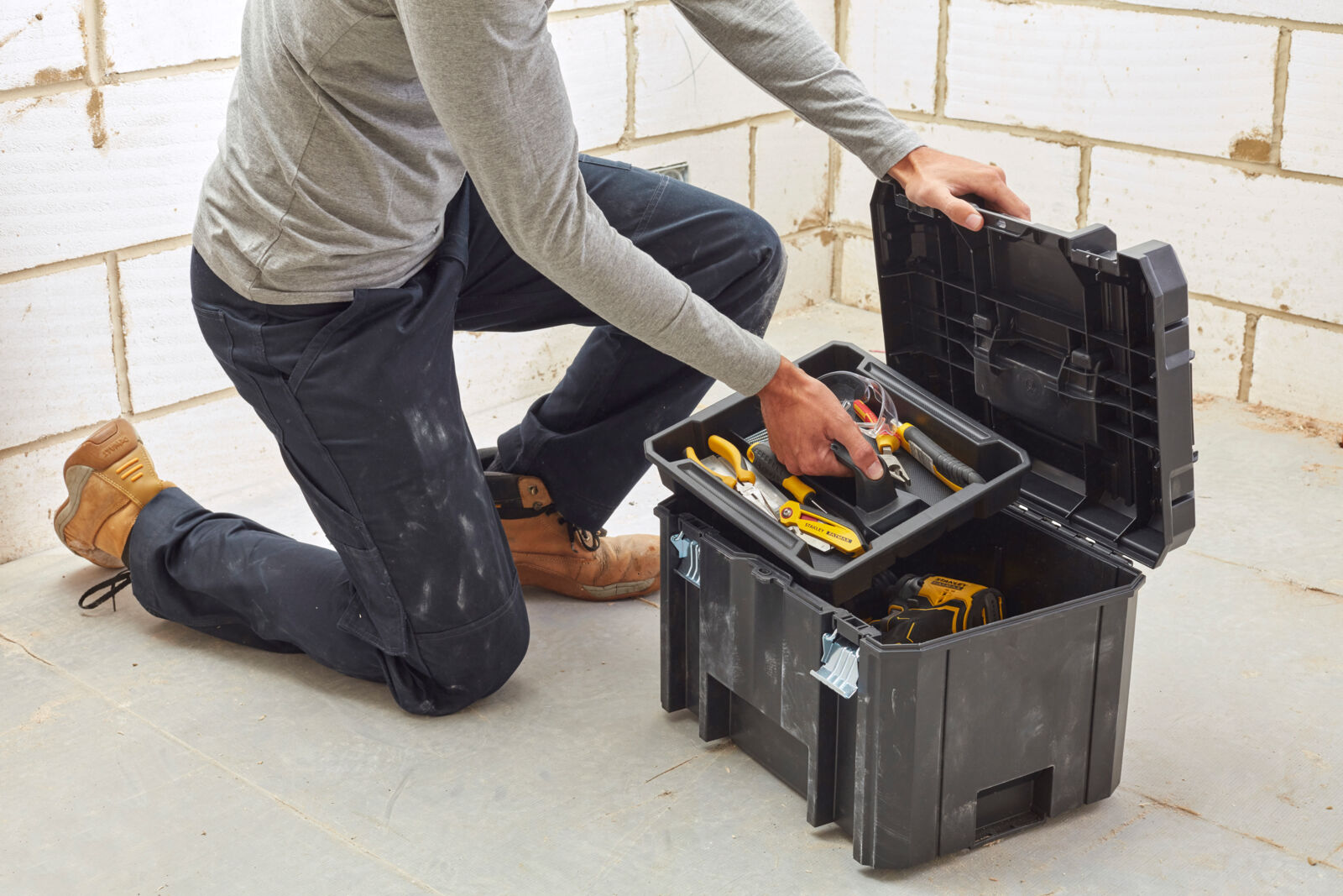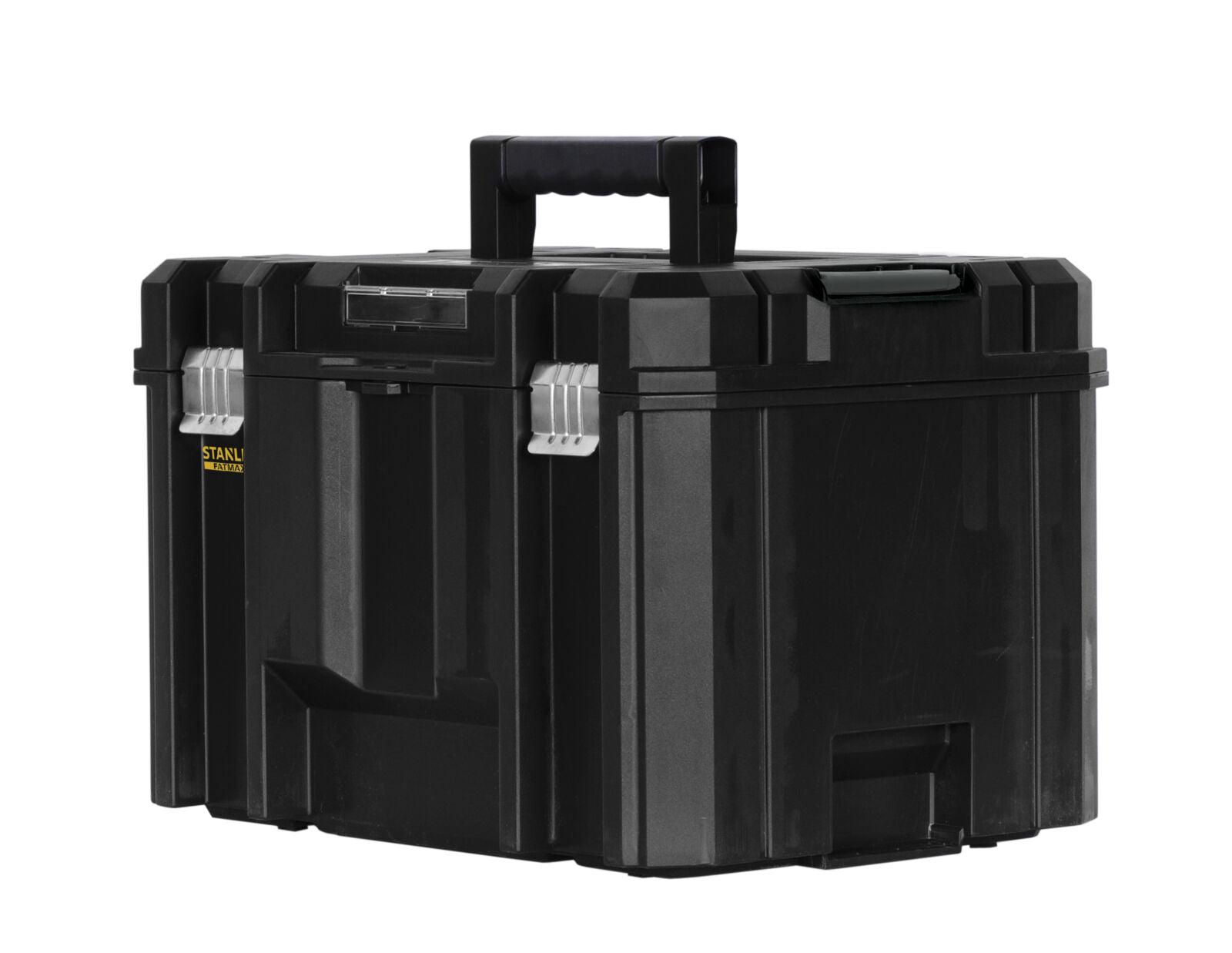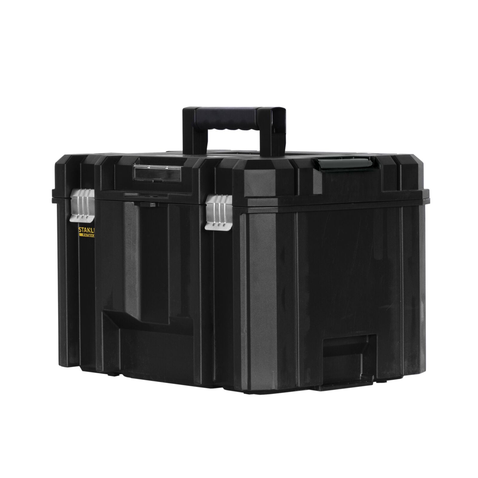 Der große Werkzeugkoffer Stanley TSTAK VI mit Ablage ist eine robuste Ergänzung des modularen TSTAK-Systems und mit anderen Koffern und Organizersystemen kompatibel. Er bietet ein Fassungsvermögen von 23 Litern und Metallschlösser , optional mit Vorhängeschloss .