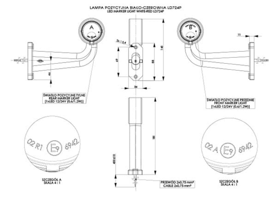 Die weiß-rote LED-Positionsleuchte LD 724/P ist die ideale Lösung für Fahrzeuge, die zuverlässige Sichtbarkeit und hochwertige Positionsbeleuchtung benötigen. Dank fortschrittlicher LED-Technologie gewährleistet sie Sicherheit und hervorragende Sichtbarkeit.
