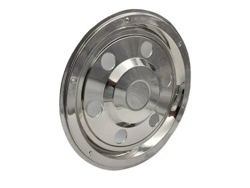 Radkappe für 17,5"-Hinterradfelge, aus robustem Edelstahl, Montage mittels Spreizring (im Lieferumfang enthalten), Standardmodell.