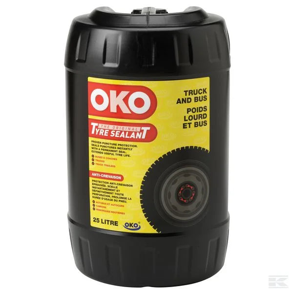 OKO Reifendichtmittel ist ein hochentwickeltes Produkt, das den Luftverlust nach einer Reifenpanne im Laufflächenbereich verhindert. OKO Lkw- und Bus-Reifendichtmittel dichtet die Panne dauerhaft ab , ohne dass eine Reifenreparatur erforderlich ist . Es ist das einzige Dichtmittel auf dem Markt, das Wärme an die Felge ableiten kann und sich daher ideal für den Fernverkehr eignet.