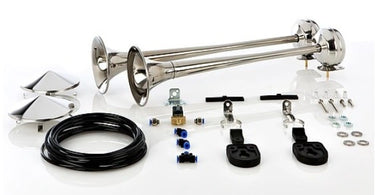 Set aus zwei Lufthörnern mit Montagesatz und 24V-Magnetventil (Edelstahl, 2x54 cm, mit Abdeckungen)