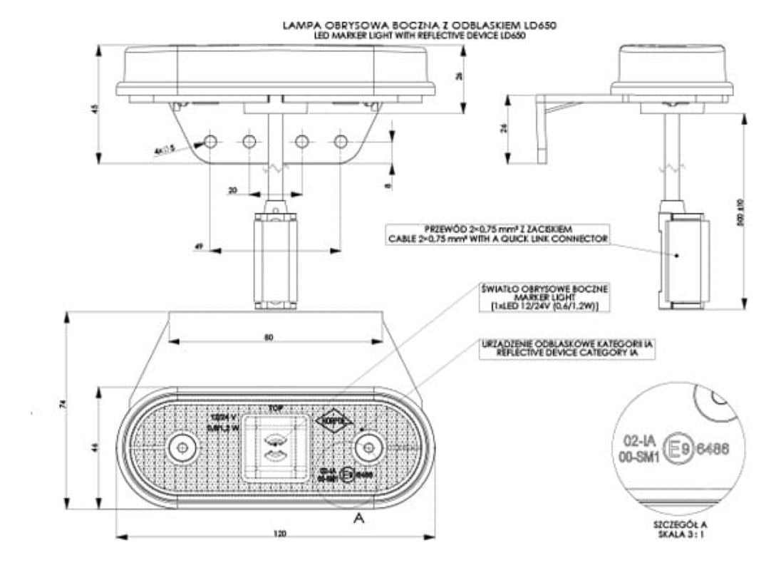 Die orangefarbene LED-Positionsleuchte LD 650 mit Reflektor und zusätzlicher Klemme ist eine hervorragende Beleuchtungslösung, die optimale Sichtbarkeit Ihres Fahrzeugs im Straßenverkehr gewährleistet. Dank des integrierten Reflektors verbessert die Leuchte die Sichtbarkeit auch ohne eingeschaltetes Licht, während die Klemme eine stabile Befestigung ermöglicht – besonders vorteilhaft bei stark frequentierten Fahrzeugen. Die LED- Technologie bietet helles Licht und hohe Energieeffizienz.