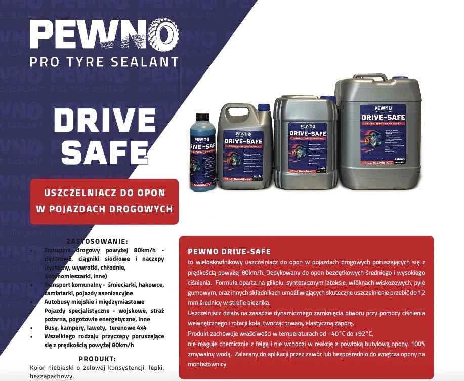 Pewno DRIVE-SAFE uszczelniacz do opon samochodów osobowych, dostawczych, kamperów, przyczep i pojazdów ciężarowych