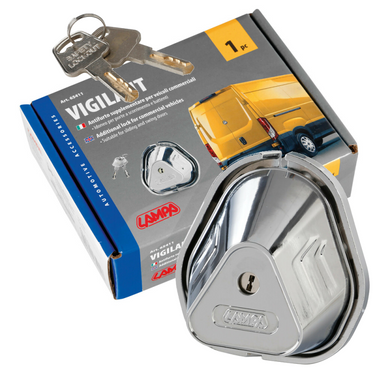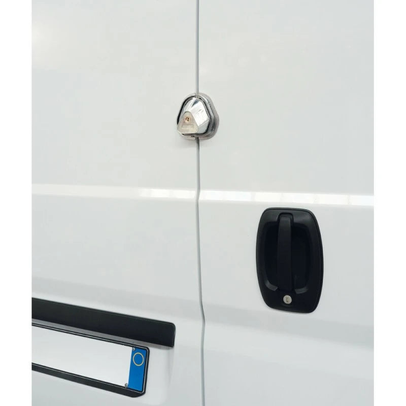 Dieses Diebstahlsicherungsschloss für Transporter ist ein Außenschloss für Schiebe- und Drehtüren an Nutzfahrzeugen. Sein 6-Punkt-Befestigungssystem verstärkt den Türverschluss, erschwert das Aufhebeln und verbessert die Abdichtung. Das Set stammt aus Italien und kann wahlweise mit Schrauben oder Nieten montiert werden – alle Komponenten sowie eine Bohrschablone sind im Lieferumfang enthalten, sodass die Installation auch in einer Werkstatt problemlos möglich ist.