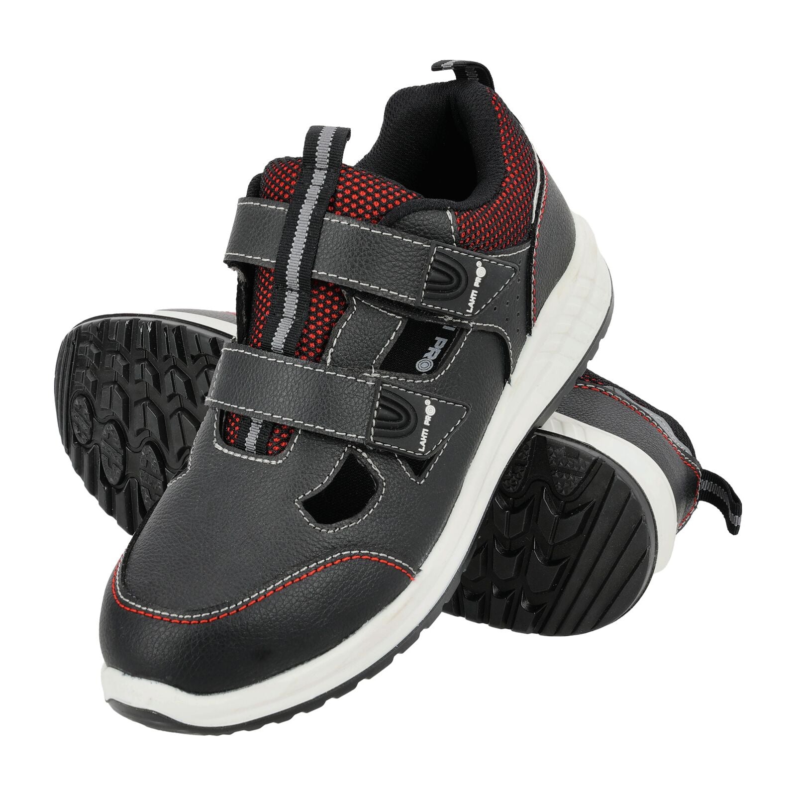 LEATHER SANDALS BLACK-WHITE-RED, S1 FO SR, CE,LAHTI