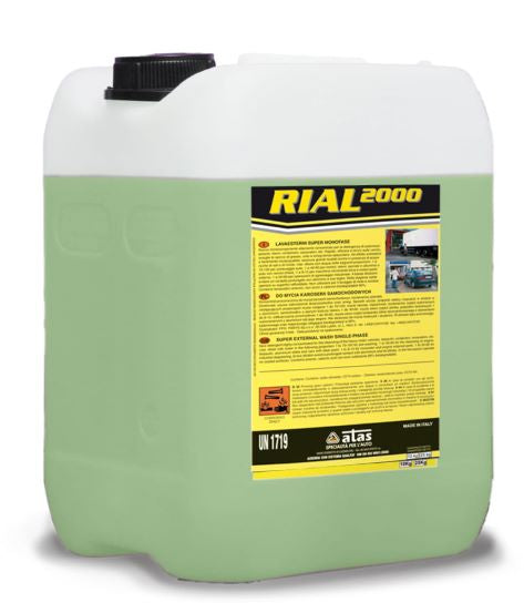 RIAL 2000 - PLAK Concentrate. A single-component foaming agent. Designed for washing the bodies of passenger cars, trucks (TIRs), containers, tarpaulins, external engine parts, and wheels. It can be applied as a foam or spray. Phosphate-free.