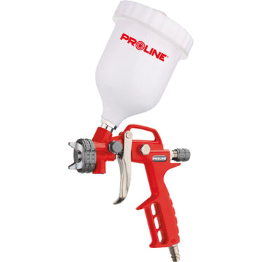 The Proline paint spray gun is a tool designed for the precise application of paints and varnishes, particularly useful for finishing and touch-up work. The aluminum body ensures lightness and resistance to damage, while the stainless steel needle and nozzle ensure long, trouble-free operation. The ergonomically contoured housing improves grip and spray control, facilitating even coverage and precise detailing.