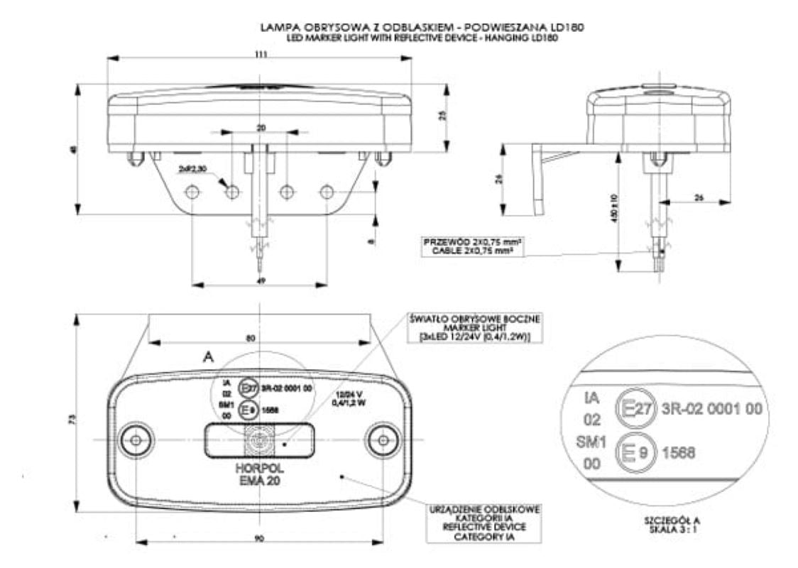 The LD 180 LED marker lamp with reflector is the perfect solution for those looking for lighting that will increase the visibility and safety of their vehicle on the road.