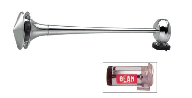 A high-quality stainless steel air horn equipped with a 12V electropneumatic compressor. An ideal solution for vehicles without a built-in air system. This product from the renowned Italian brand BEAM is resistant to corrosion and adverse weather conditions.
