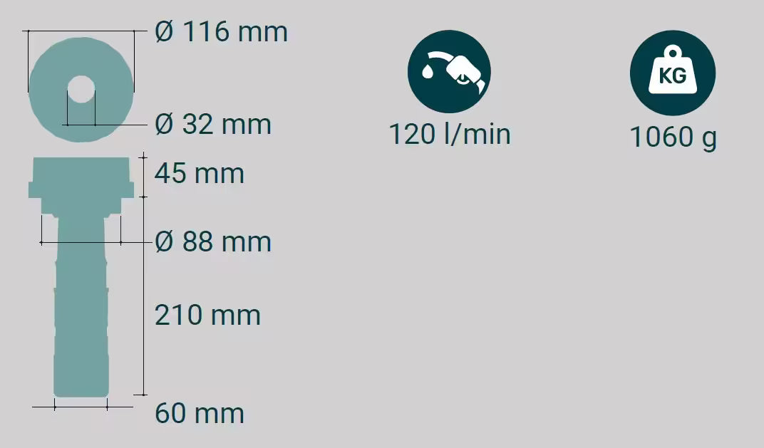 - Zwiększona przepustowość 120 l/min - eliminuje odbijanie się pistoletu paliwowego