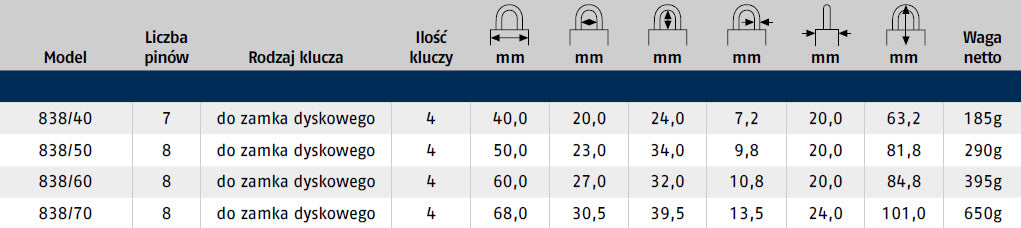 Product Description: The ABUS 838 padlock is a durable lock made of hardened, chrome-plated steel, providing exceptional protection for valuables and transported goods. Thanks to its design, this padlock offers the highest level of security, ideal for use in harsh environments.