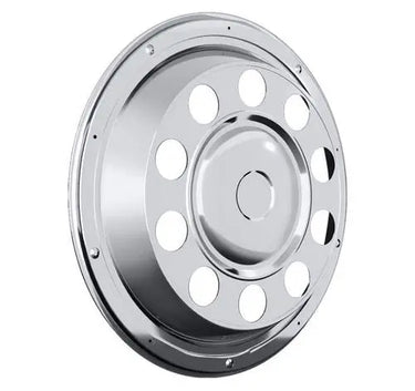 This 22.5" front wheel hubcap is made of high-quality stainless steel, ensuring durability and aesthetic appeal. The surface has been carefully polished to achieve a striking shine. The product is resistant to rust and harsh weather conditions. It is secured with an expansion ring, which is included in the kit.
