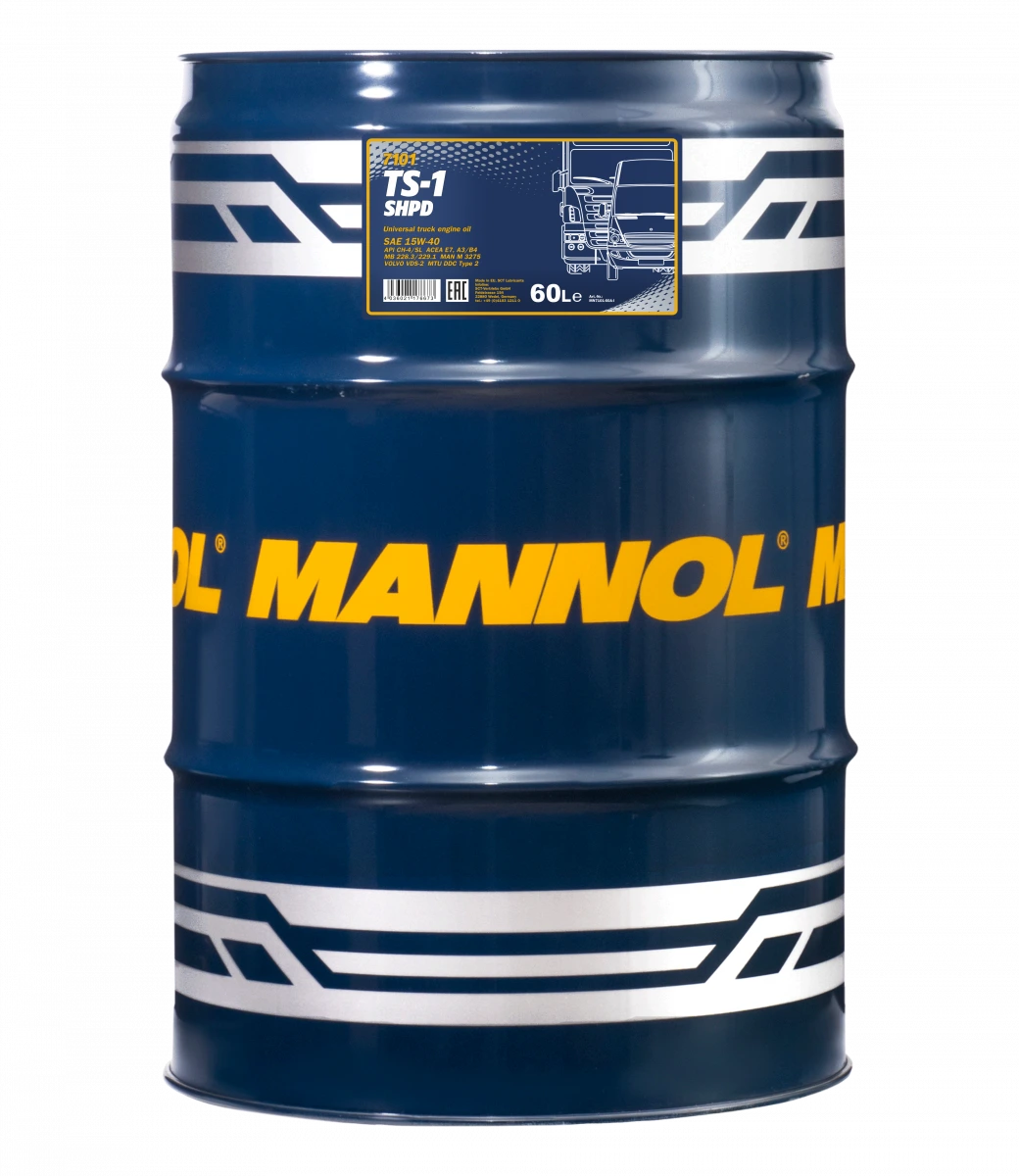 MANNOL TS-1 SHPD 15W-40 is designed for all types of heavy-duty diesel engines, including long-haul trucks, buses, construction, mining, agricultural, and special-purpose equipment. Meets Euro I, II, III, and IV requirements, ensuring a high level of performance of CH-4 or lower.