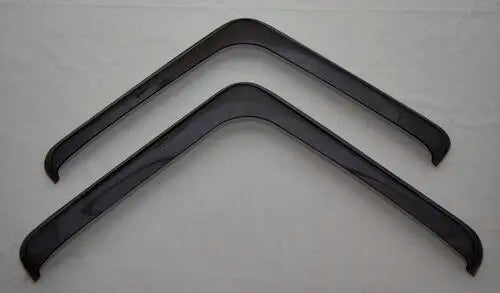 The kit includes two wind deflectors, each protected by a protective film and packaged in a sturdy box. Installation is accomplished using stainless steel clips that attach to the vehicle's door.