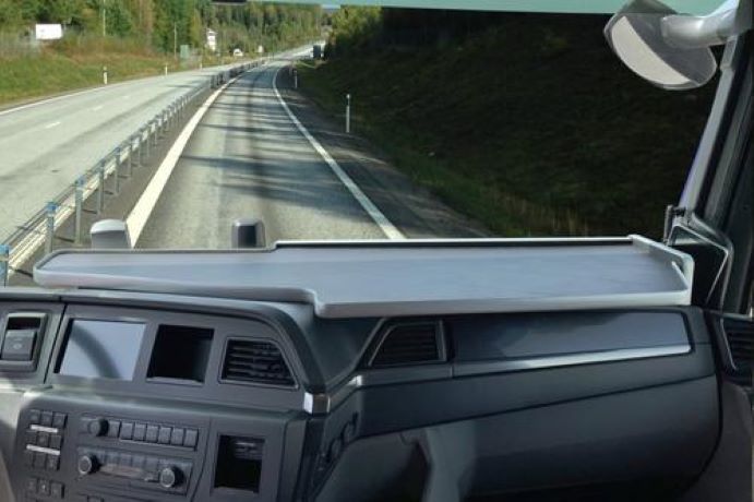 Shelf with homologation with cutout for LGS for MAN TGS,TGM,TGL (TM/TN/NN/CC/DN) part no. 2651MA21U12 The shelf has an ABE certificate (general operating permit) issued by the KBA (German Federal Motor Transport Authority) High-quality poplar plywood shelf covered with imitation leather and soft black edges. Anti-slip lining. Certified. Designed for installation in: MAN TGL TM/TN/CC/DN 2020 - MAN TGM TM/TN/CC/DN 2020 - MAN TGS TN/TM/NN 2020 -