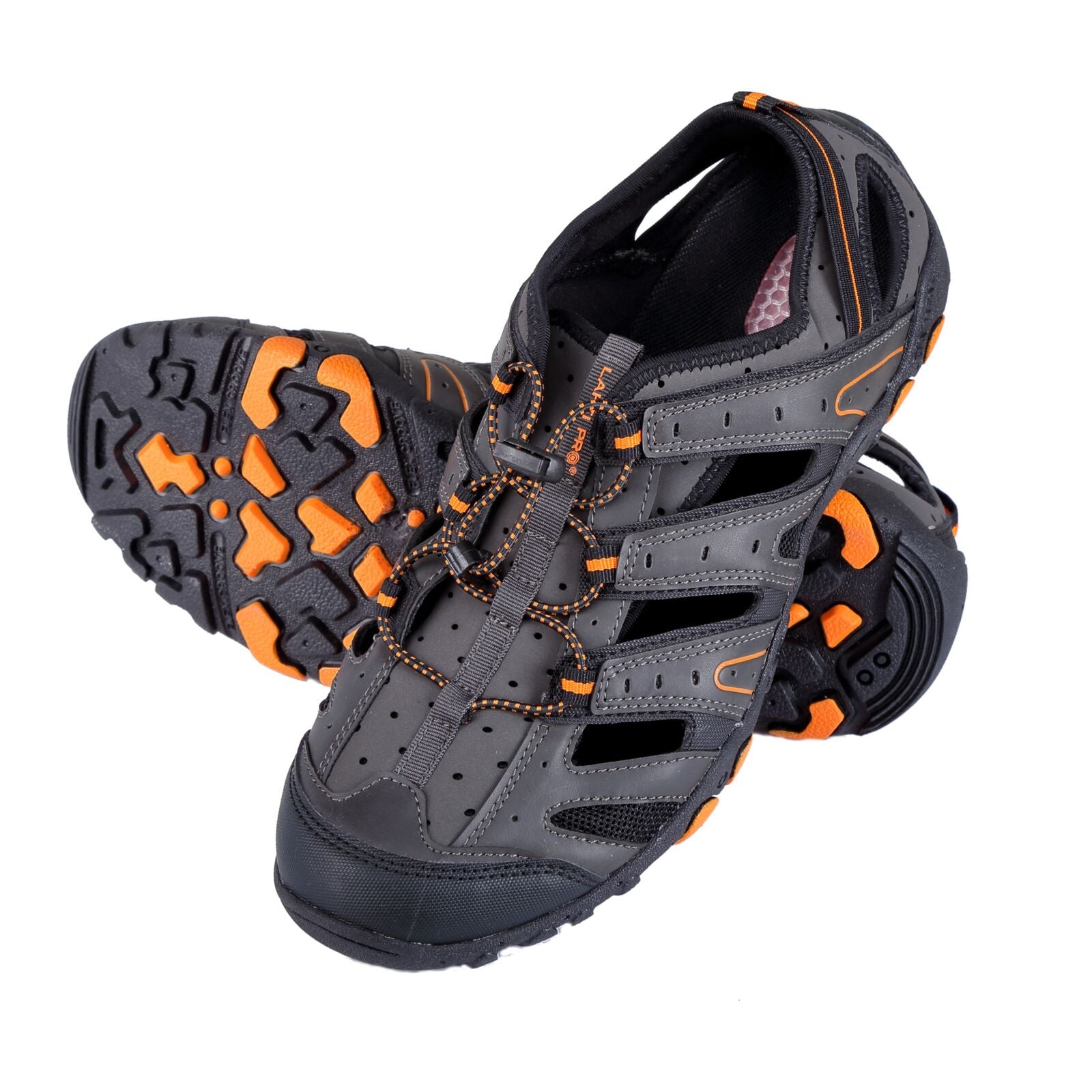 PU/KNITTED GREY-BLACK-POMEL TREKKING SANDALS, LAHTI