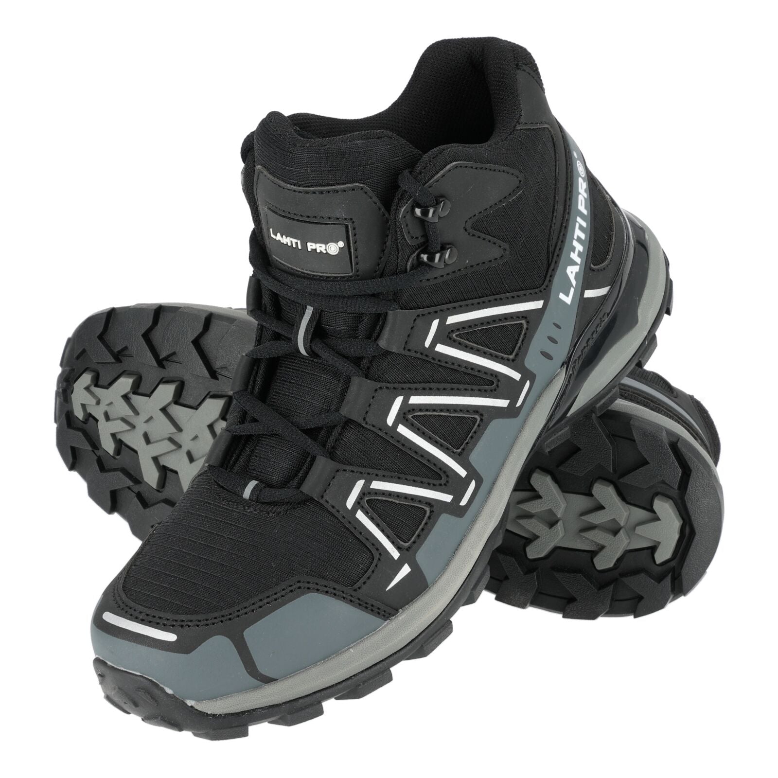 KNITTED BLACK-GRAY ANKLE SHOES WITHOUT TOE CAP, O2 SRA, CE, LAHTI