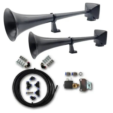 HADLEY air horn set (48 cm and 56 cm, matt black) with 24V solenoid valve and mounting kit