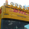 Osłona dedykowana do ciężarówek Scania 4/R z kabiną Topline do 06/2013. Pasuje do pojazdów bez i z przednim lusterkiem. Specjalnie zaprojektowana dla tego modelu kabiny z wycięciami dla wszystkich pięciu obrysów. Jeśli pojazd nie posiada fabrycznie środkowych obrysów, należy dokupić centralny wspornik nr katalogowy 14BC376022.