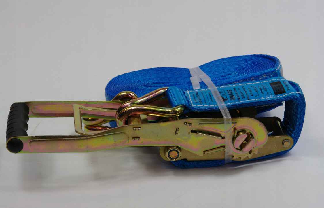 Zestaw 9m składający się z pasa do mocowania ładunków o długości 9,5m oraz klamry napinającej ERGO L300 o długości 0,5m.