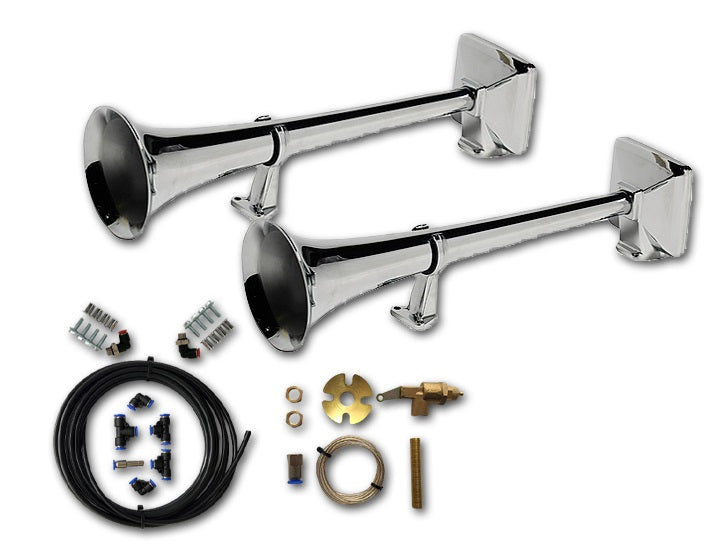 Zestaw sygnałów pneumatycznych HADLEY 2x56 cm – chromowane, okrągłe, z zaworem na sznurek | Klasyczny dźwięk, niezawodna konstrukcja